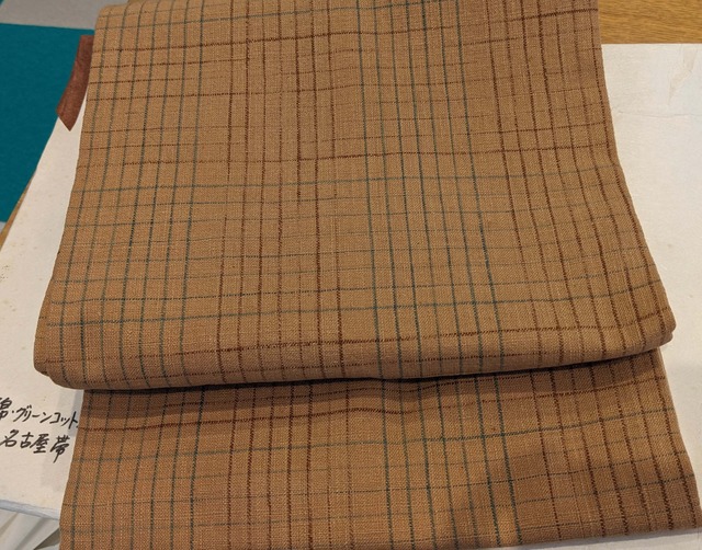 藤山千春の貴重な吉野格子帯。 渋めのグリーン系が大人っぽい帯です。