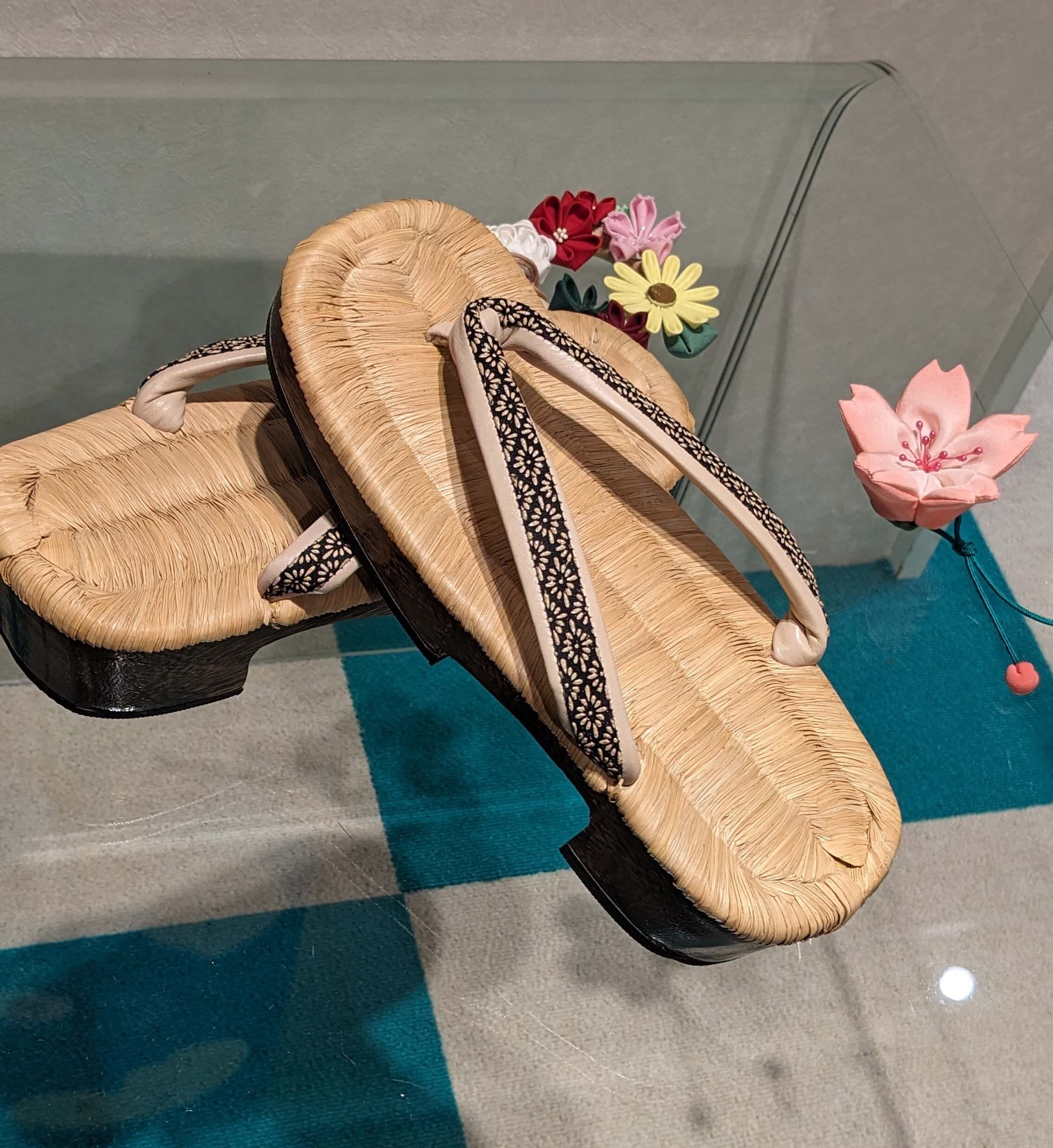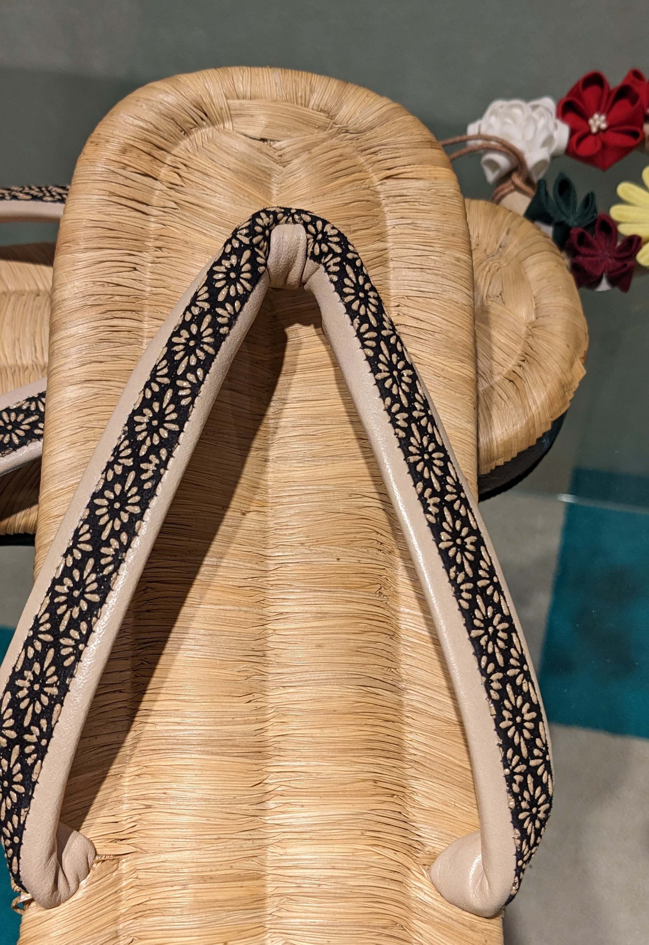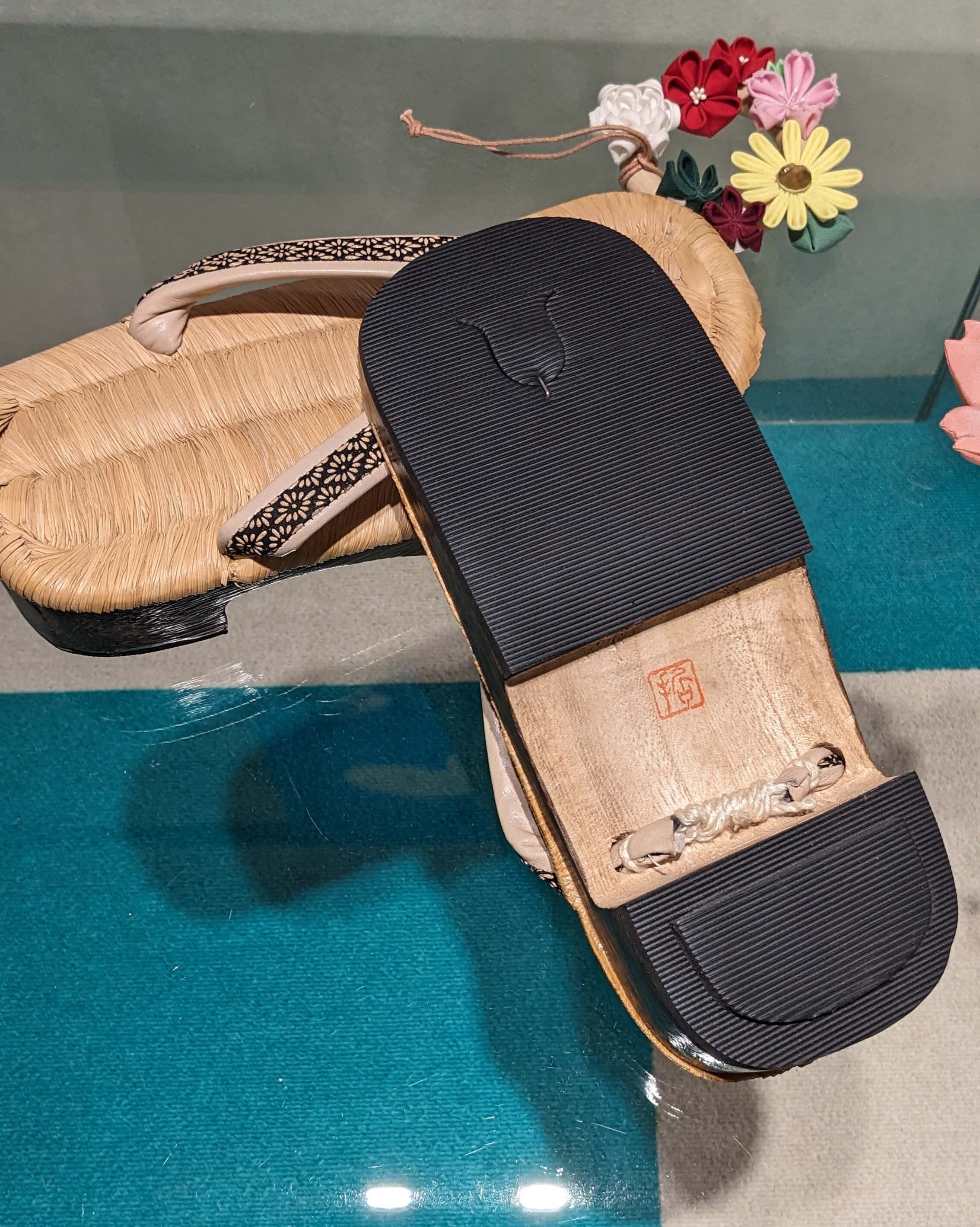 畳表に印伝の鼻緒をすげた右近の下駄です。