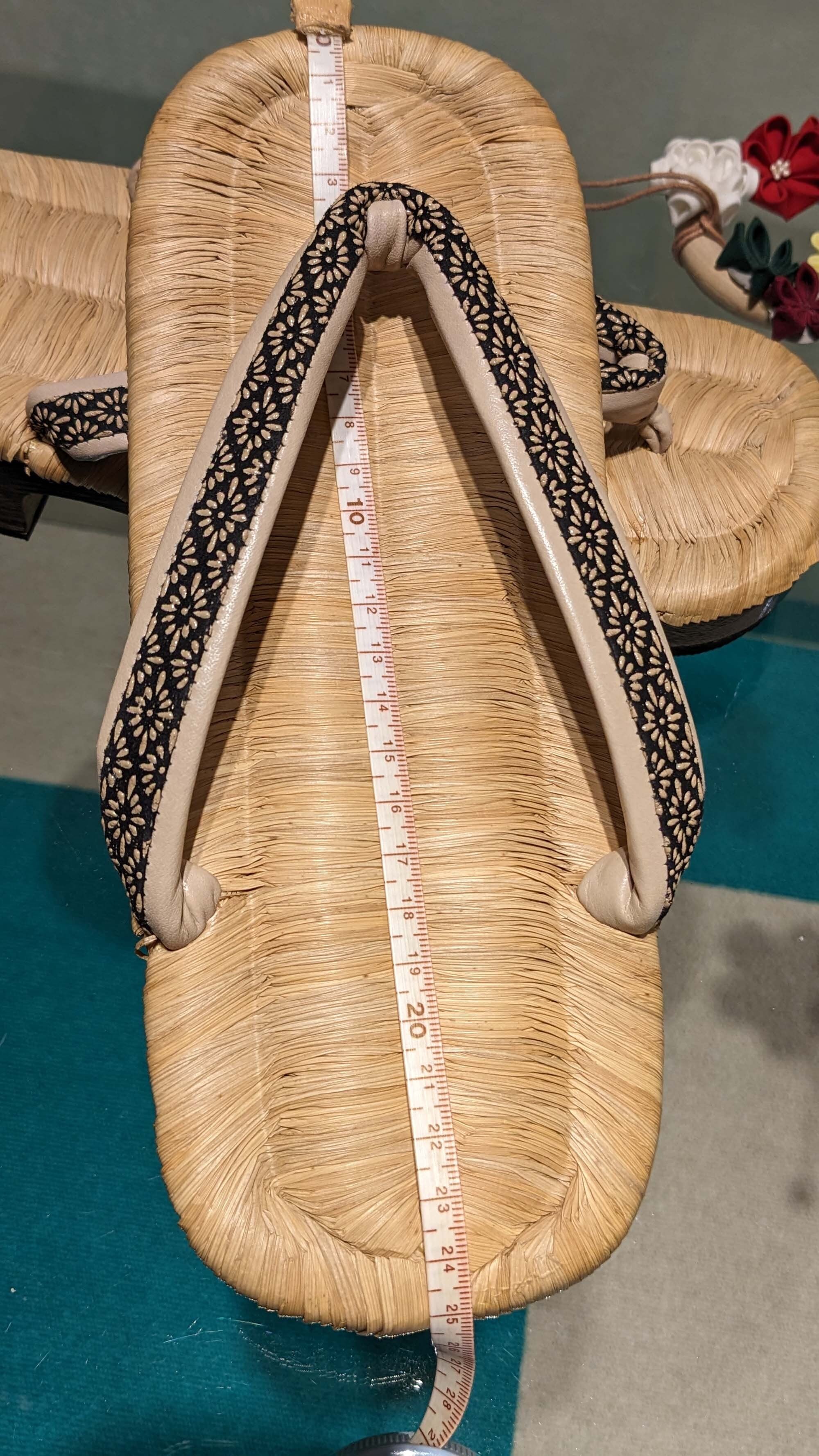 全長が24センチで 鼻緒が16㎝ 幅は9・5㎝です。