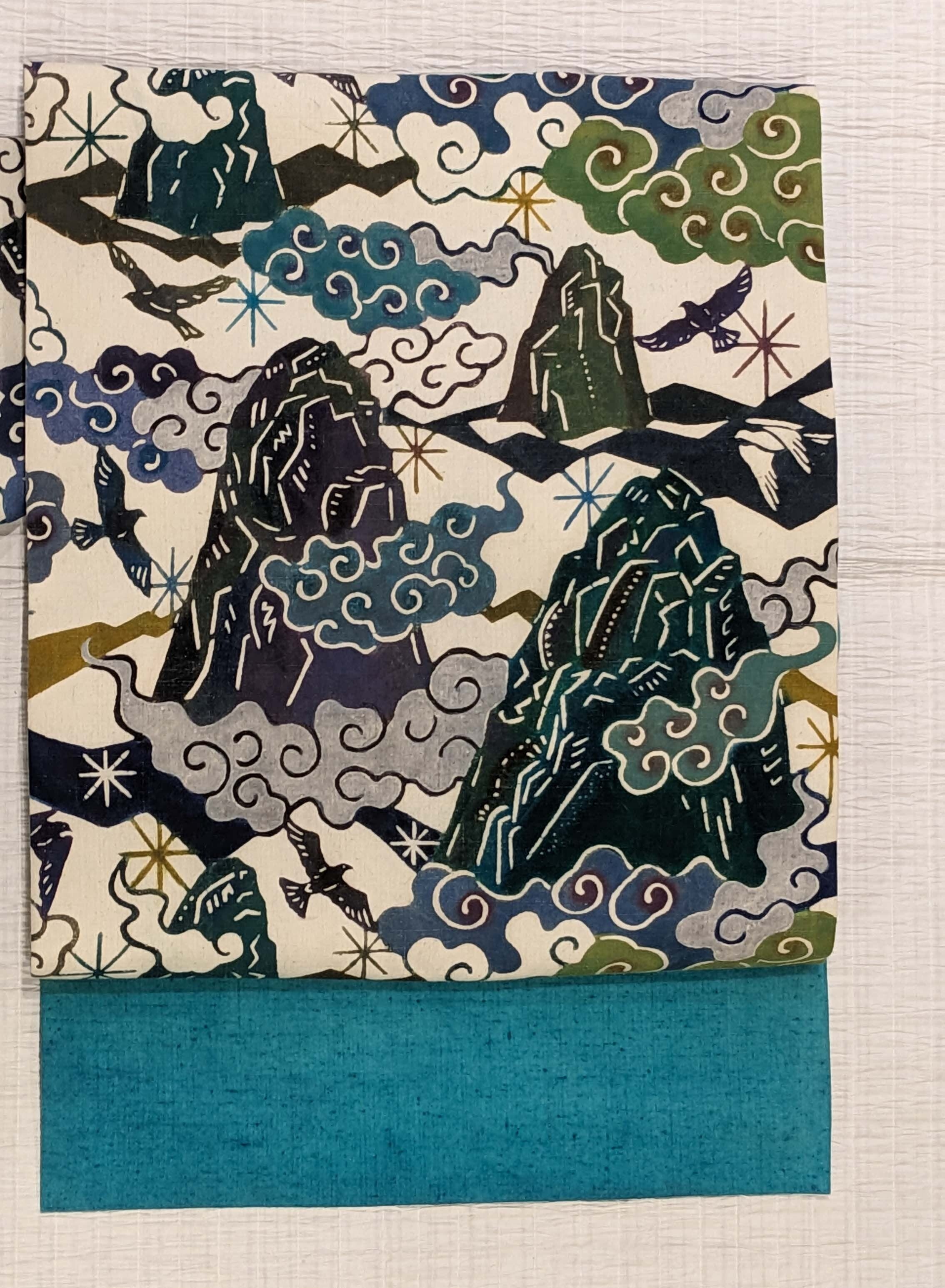垂れには青緑、手先はグレーで手先の先に山を染めてあります。
