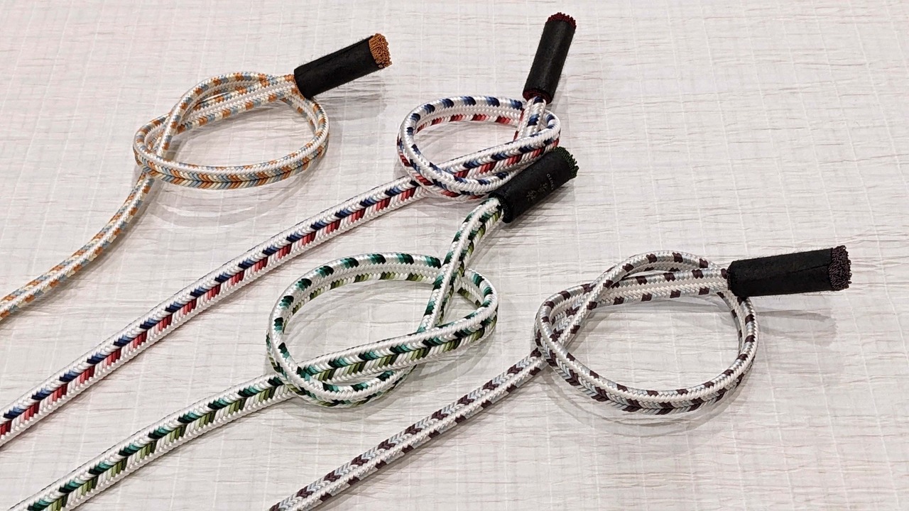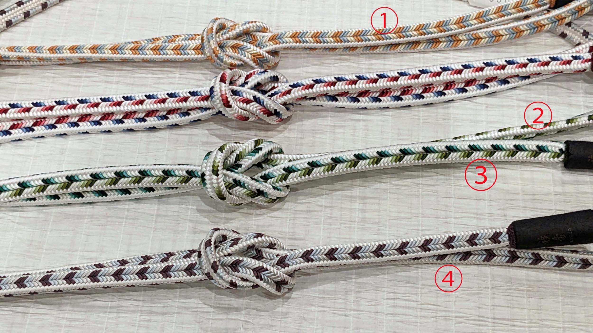 冠組に多色の糸でかすれた矢絣のような模様を組み込んでいます。
