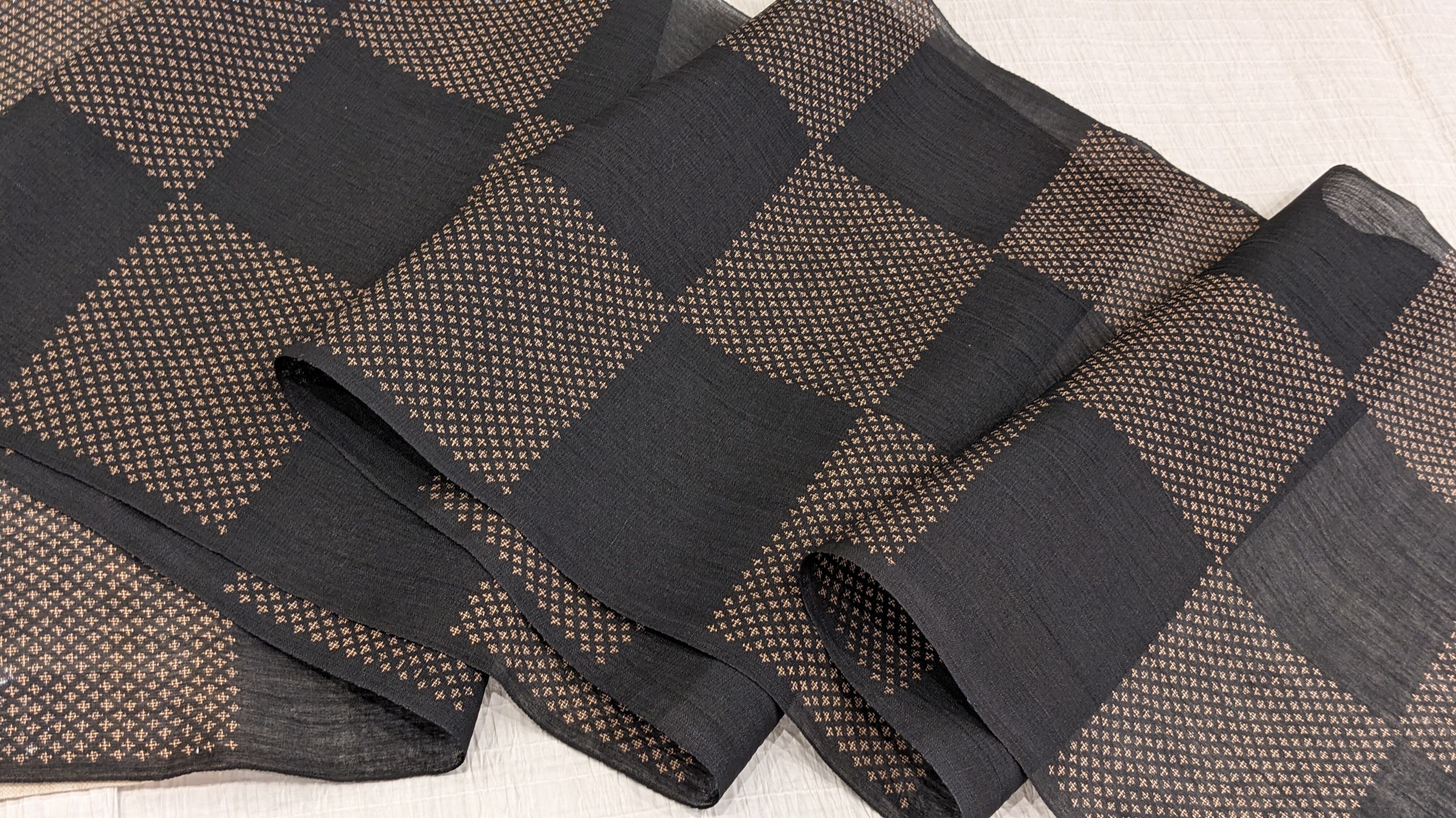 小千谷縮 マンガン染 市松